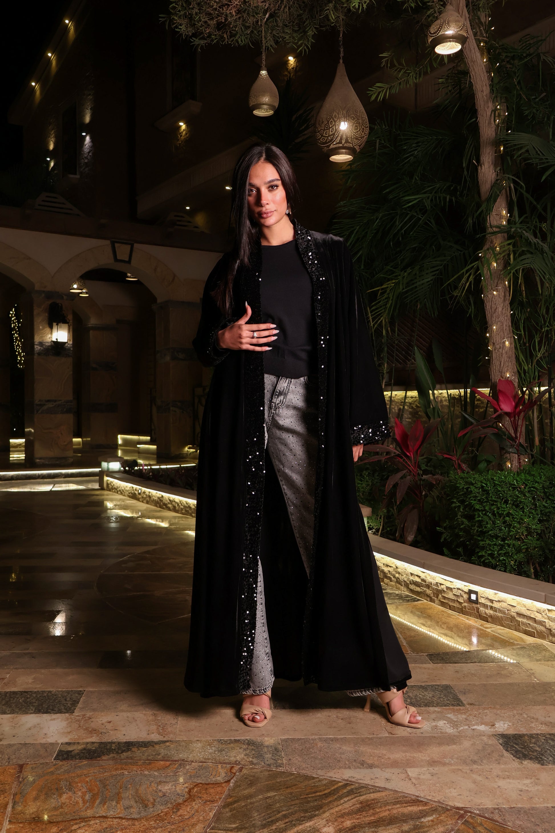 Effortlessly Chic Velvet Kaftan with Sequin Details